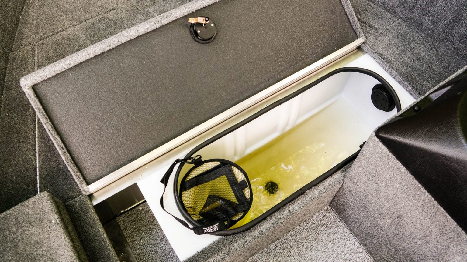 - Živá nádrž na nástražné ryby – objem 76 litrů, kyslíkové čerpadlo